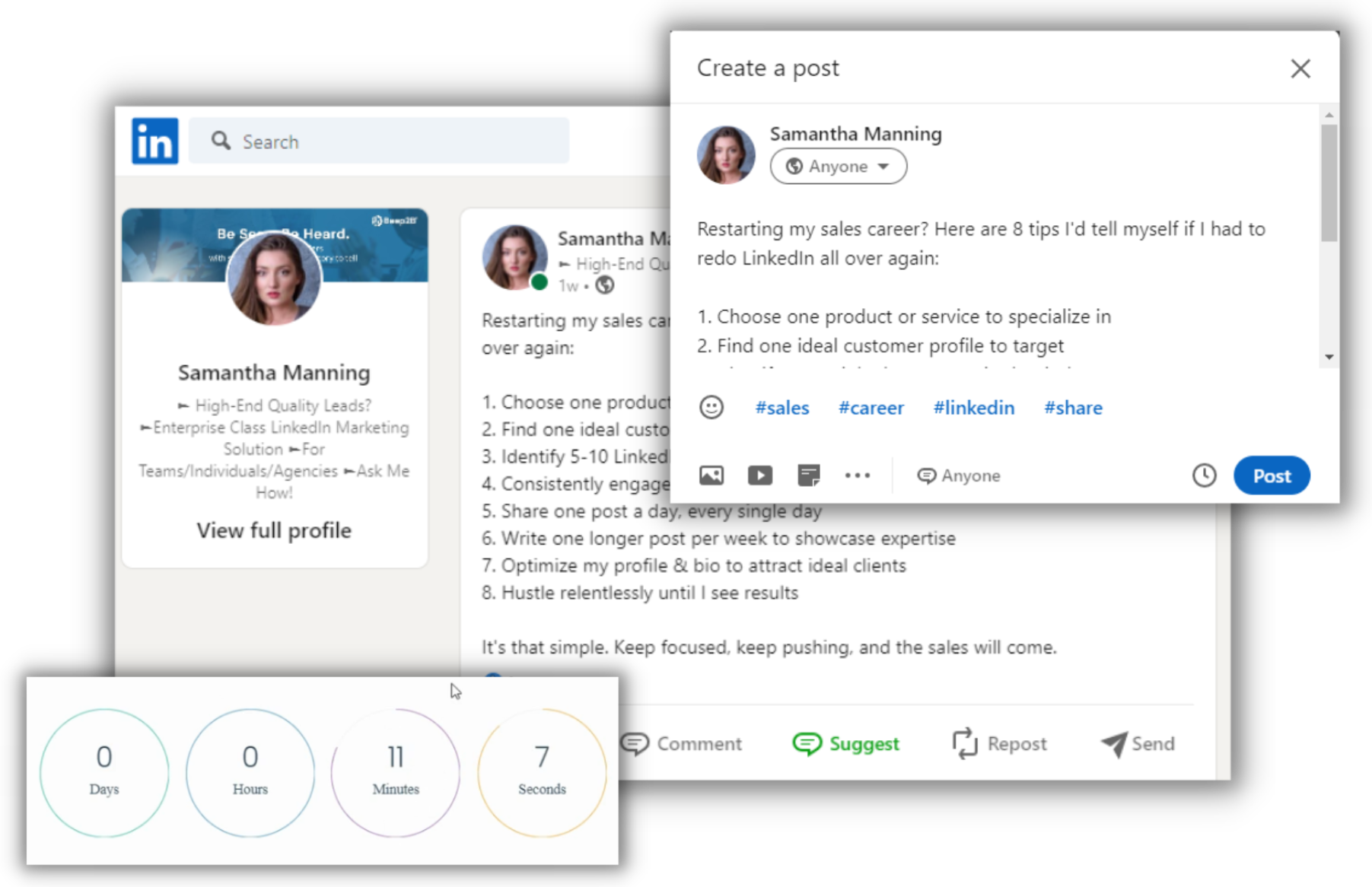 I received more views on a video than I’ve ever received before (about 700 in the first day) and on a written piece that is also probably my highest (about 1,300 in the first day). Both scaled from there, one of them is still being promoted by LinkedIn’s algorithm after a week. LinCreator works!